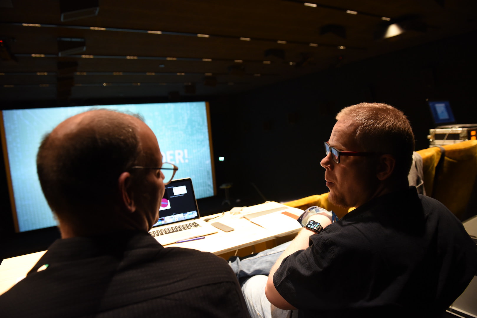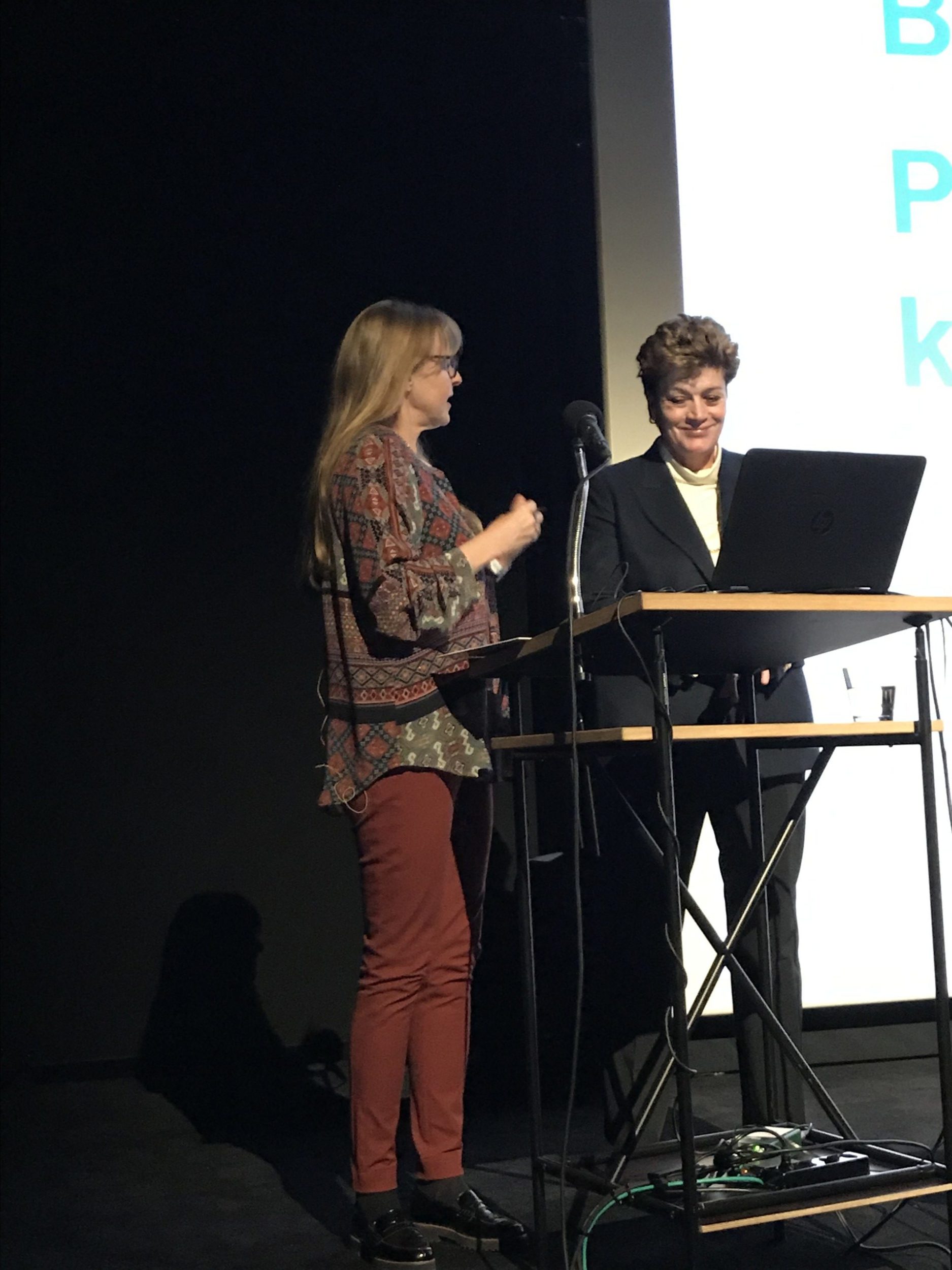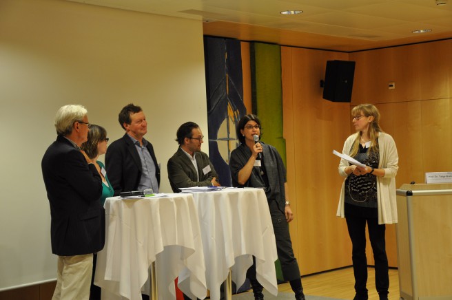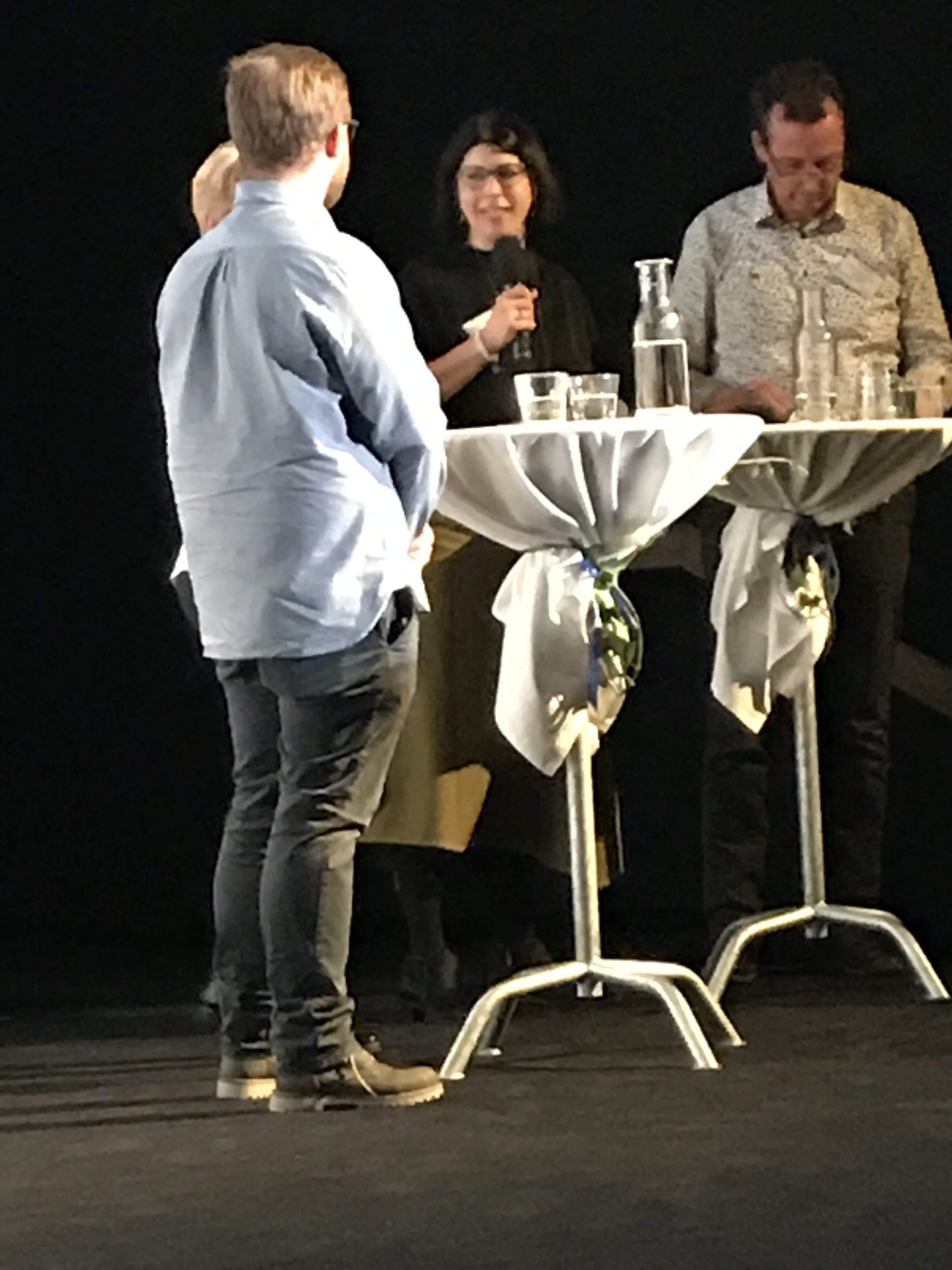 Reflexion mit den beiden Referenten auf dem Podium mit:
